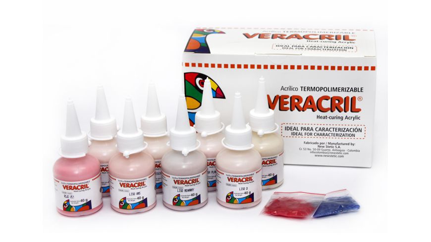 Veracril® Acrílico Termopolimerizable Jaspeado es una resina acrílica (polímero), indicada para la fabricación de prótesis dentales totales, parciales y removibles.