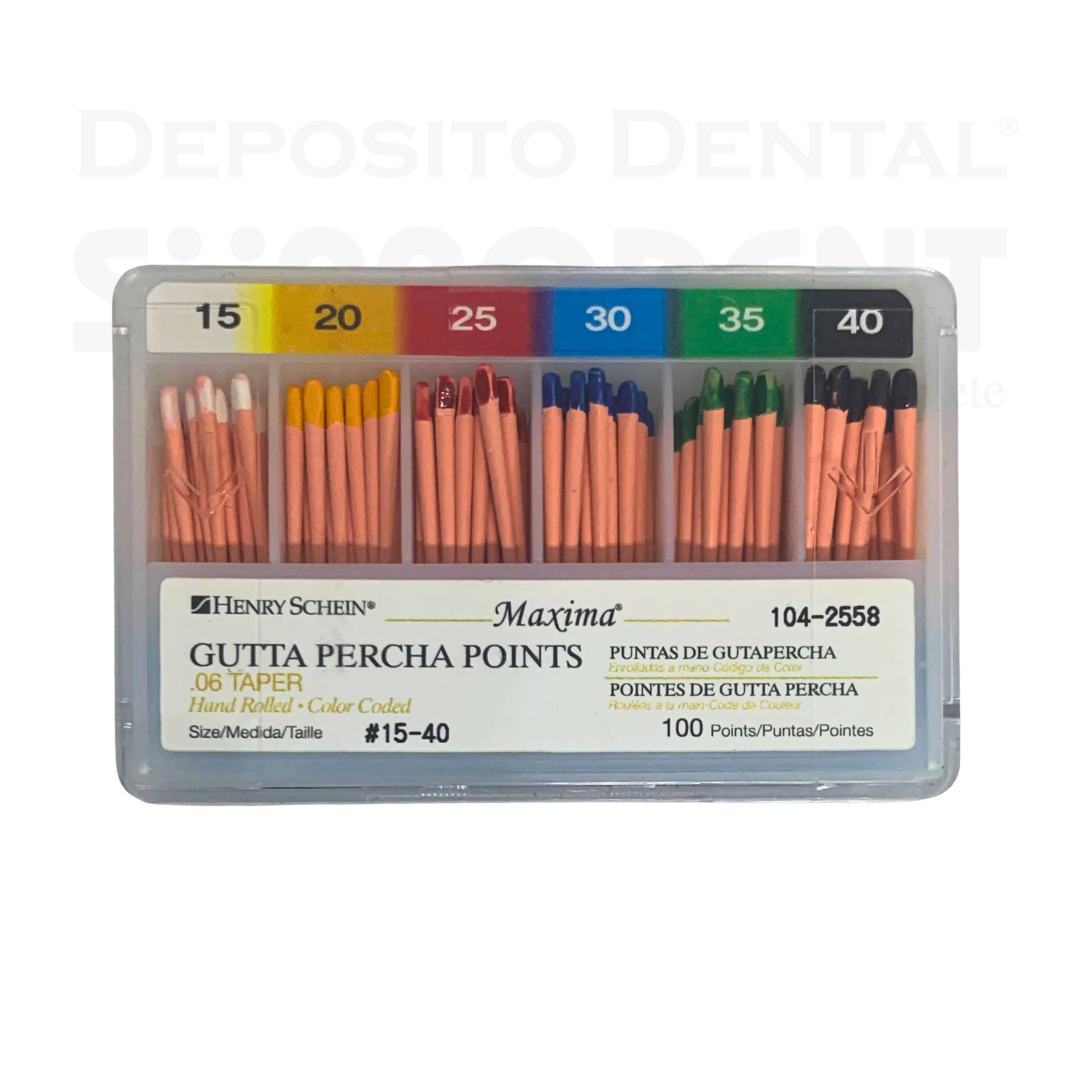 Gutta percha con taper x 150 puntas hechas a mano , marca HENRY SCHEIN.