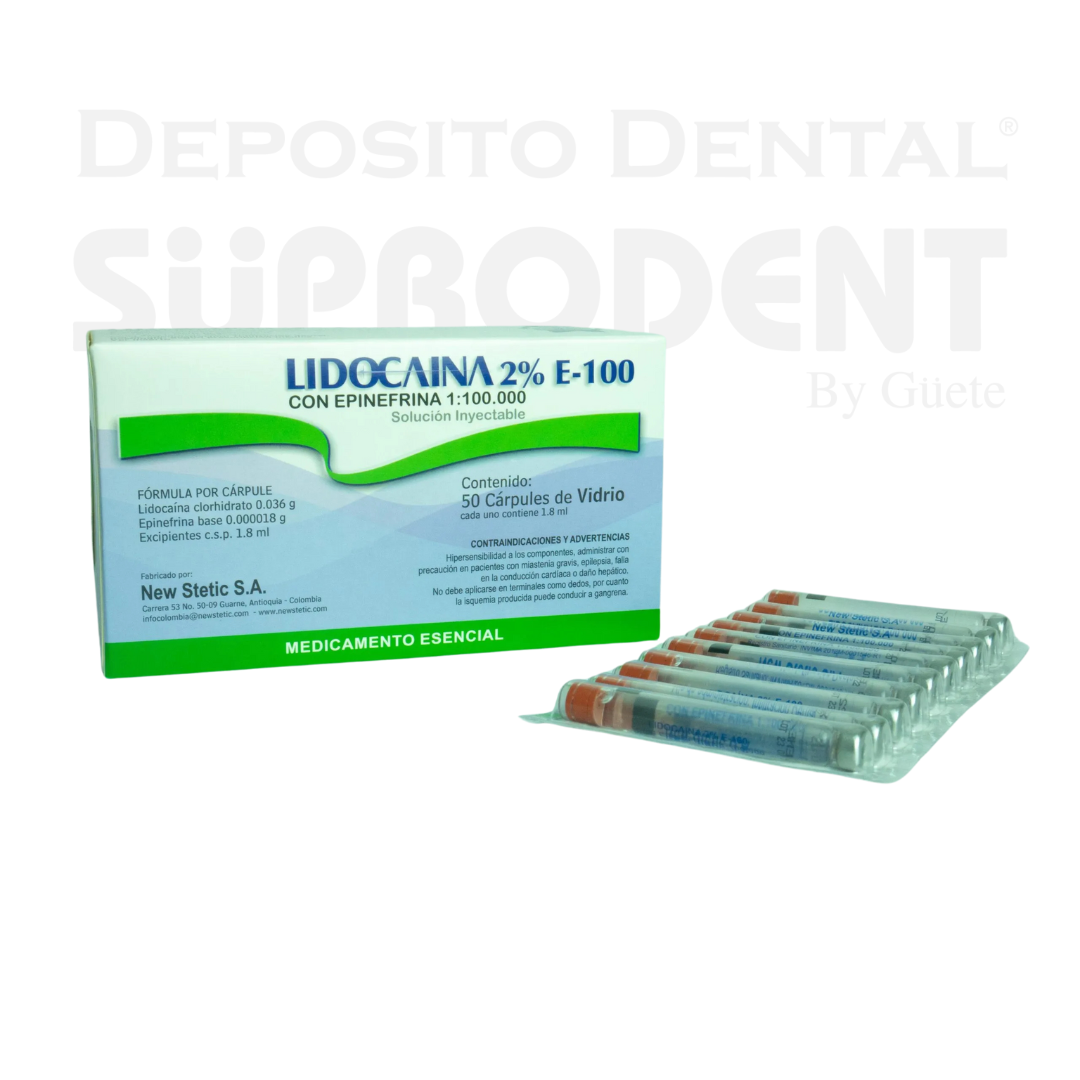 Lidocaína envase de vidrio, 2% epinefrina, 1:100.000 x 10 carpules de vidrio.