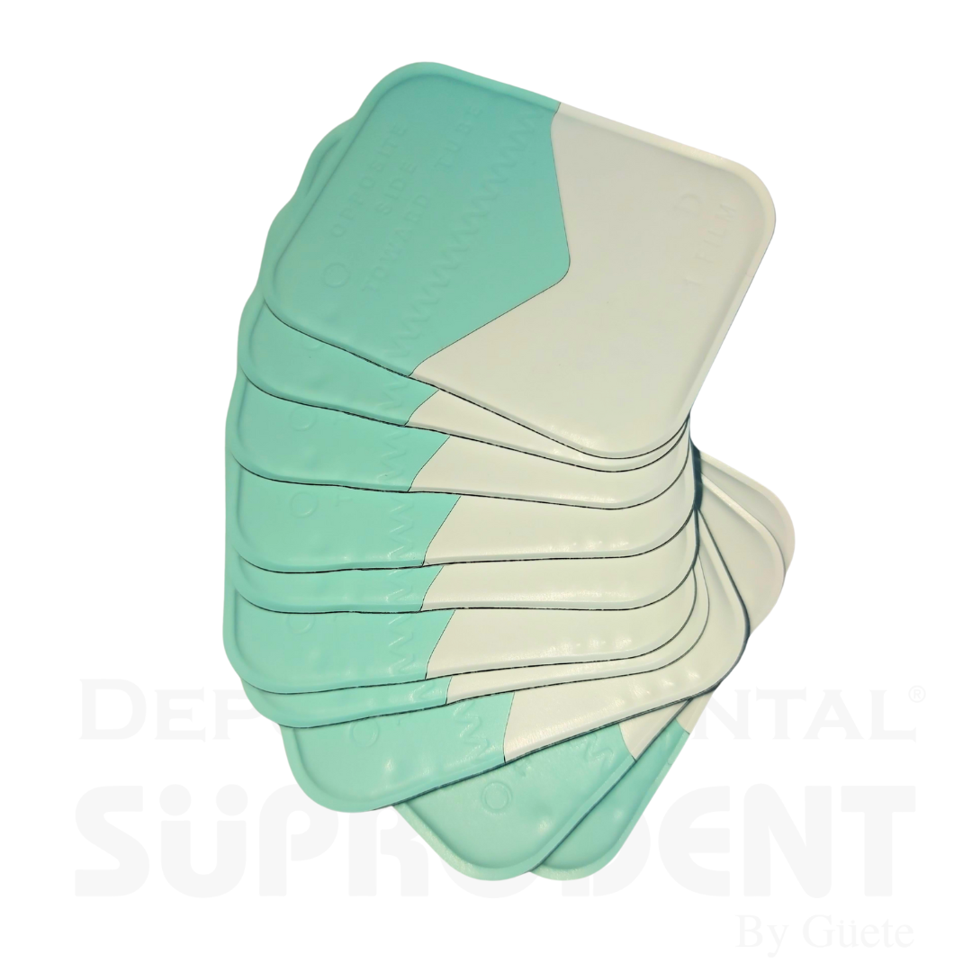 Puede usarse también como aleta de mordida y examinación interproximal, es una película D-SPEED.   O sea, rápida y poca radiación.